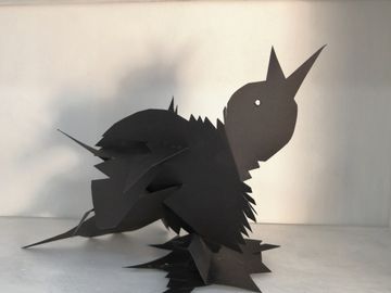 These sculptures are made entirely of paper, using different techniques including slotting, folding and gluing